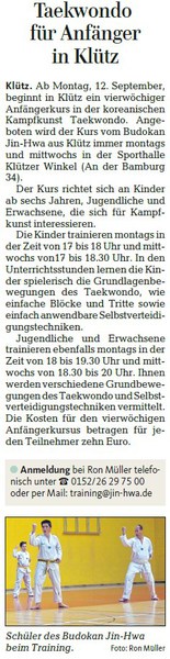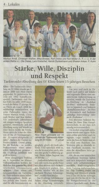 Taekwondo-Abteilung des SV-Klütz feiert 15-jähriges Bestehen